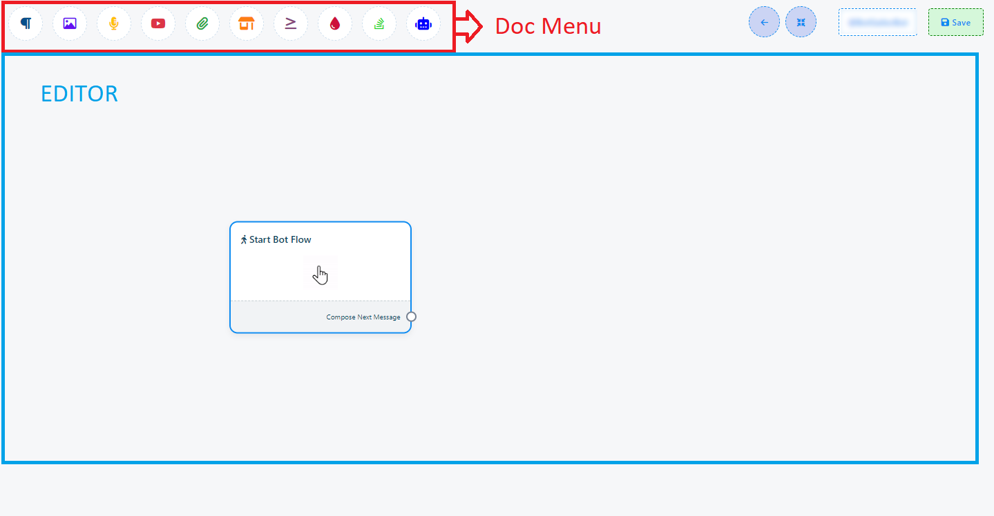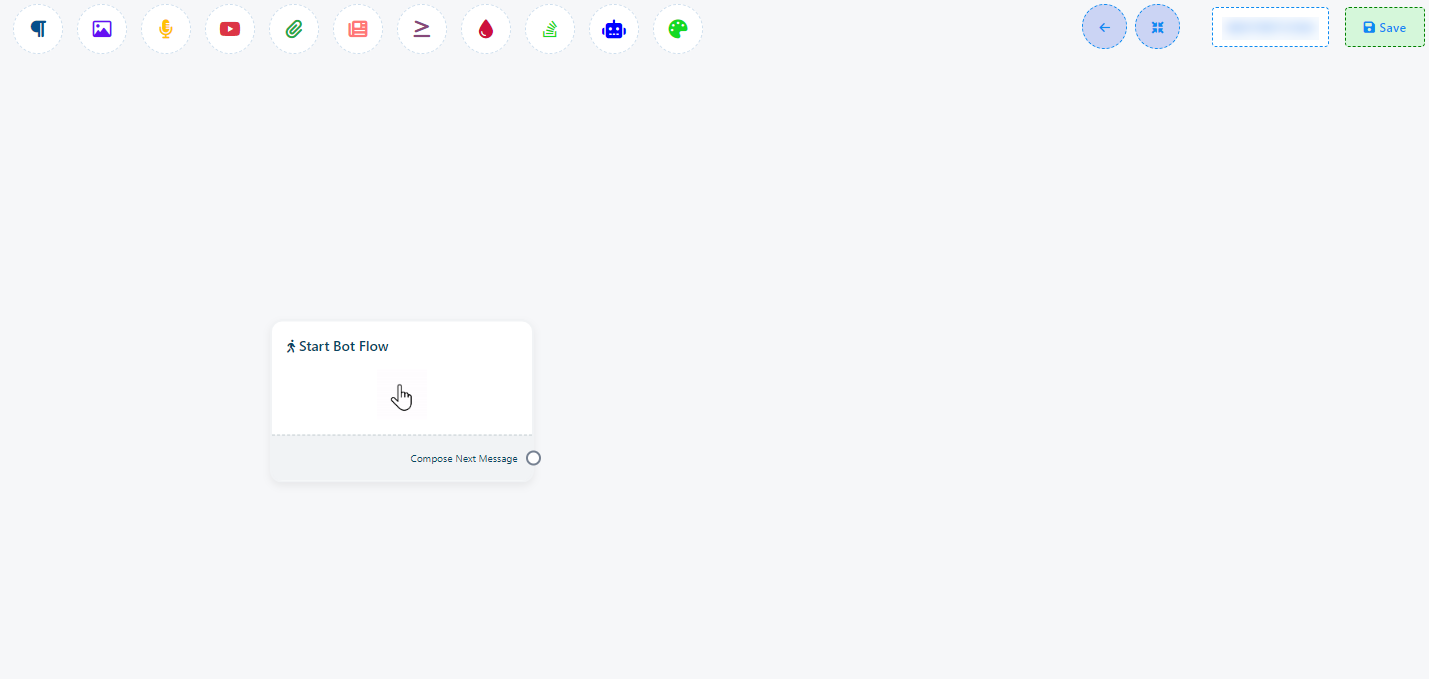 16. Once you`ve completed the `Start Bot Flow` setup, you`ll encounter a sockets: `Compose Next Message`, These sockets allow you to add various components and configure them.