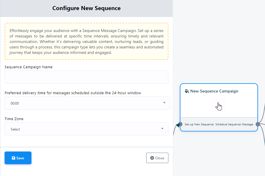 In practical terms, it allows you to configure a series of messages that are sent at precise time intervals, ensuring that communication with users remains timely and contextually relevant.