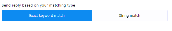 2. Matching Type: You can choose the matching type by clicking on one of the two buttons provided: `Exact Keyboard Match` or `String Match`. By default, `Exact Keyboard Match` is selected. With this option, the bot will trigger only if the user`s input matches the keyword exactly. In contrast, with `String Match`, the bot will trigger if the user`s input partially matches the keyword.