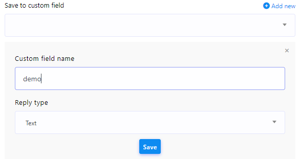 4. Save to custom field: You have the option to store the answer data in a specific data table that you specify. If you require a new custom field, it can be created by clicking the `Add New` button.